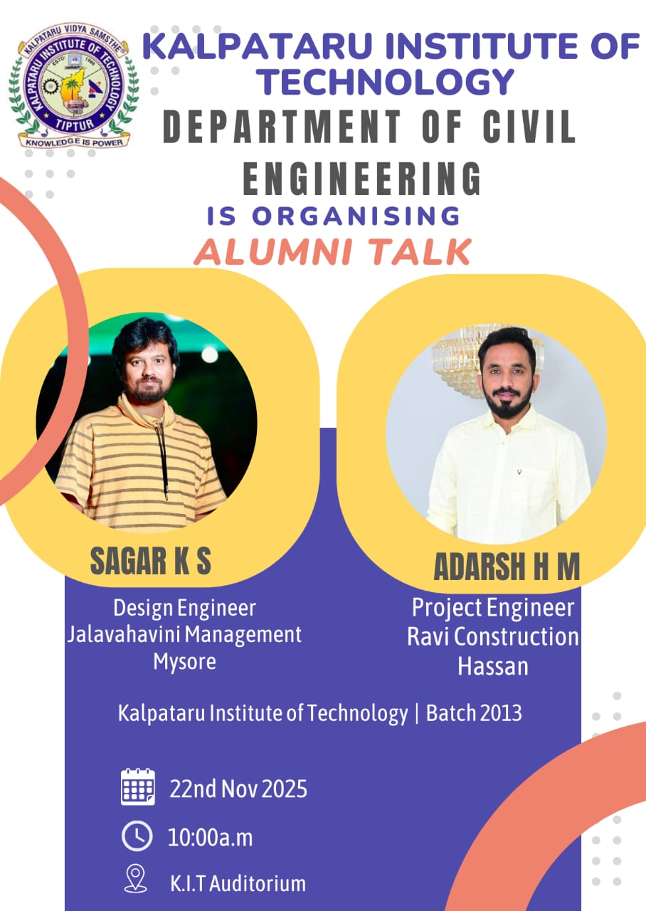 I deem it is a great pleasure and privilege to welcome you to Kalpataru Institute of Technology, which is one of the reputed Institutes of our state being run by Kalpataru Vidya Samsthe, Tiptur.