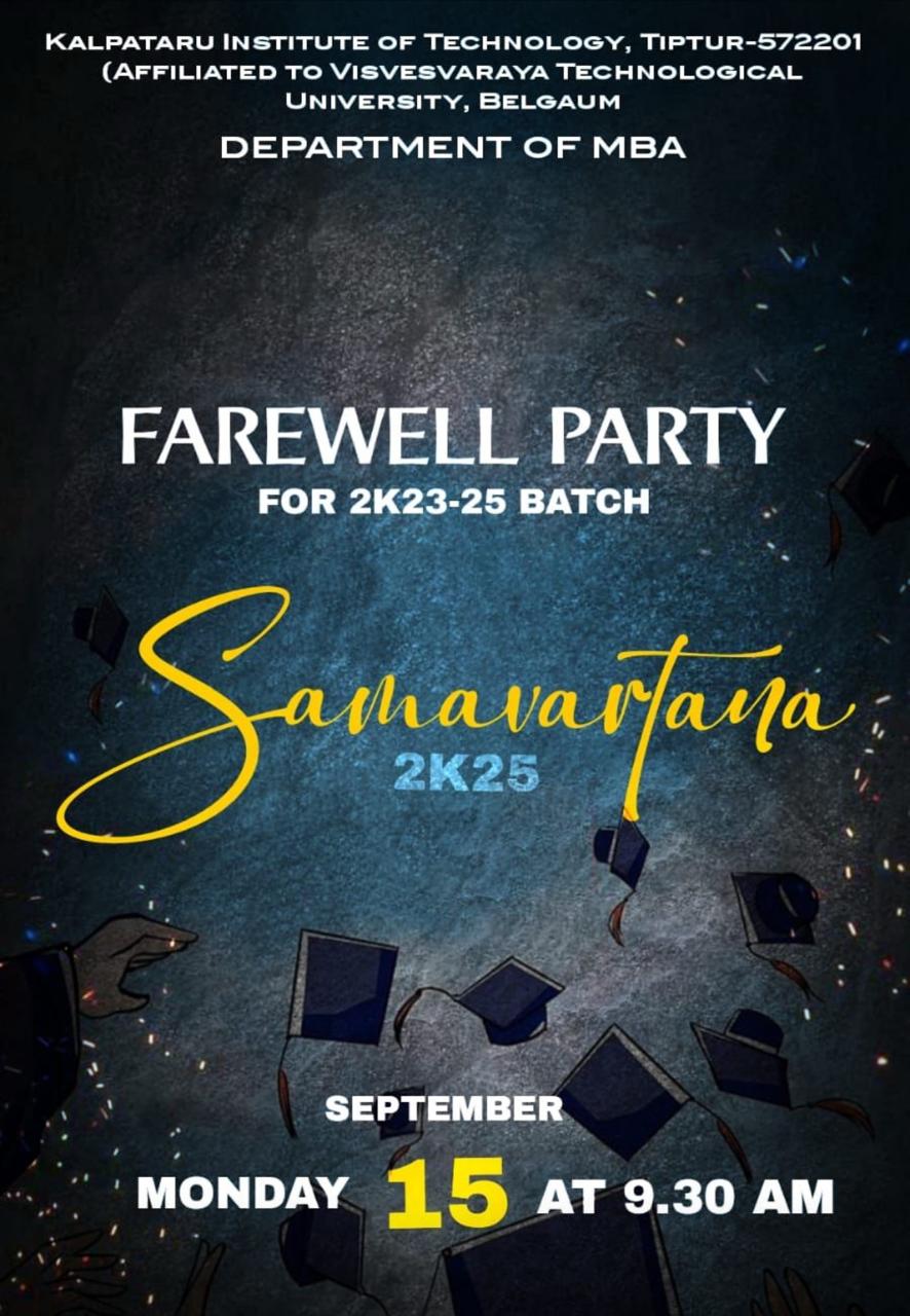 MBA Third semester students organised Farewell Samavarthana- 2025 to Outgoing batch of 2023-2025 on 15.9.2025